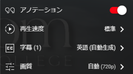 3. 動画を日本語字幕付きで見る場合は、以下の要領で日本語自動字幕を設定してください。