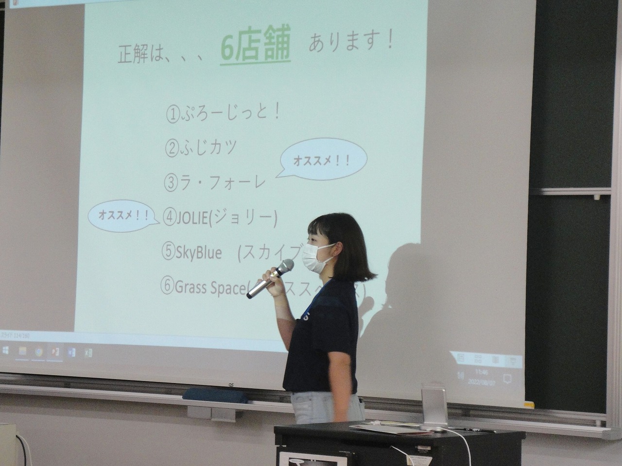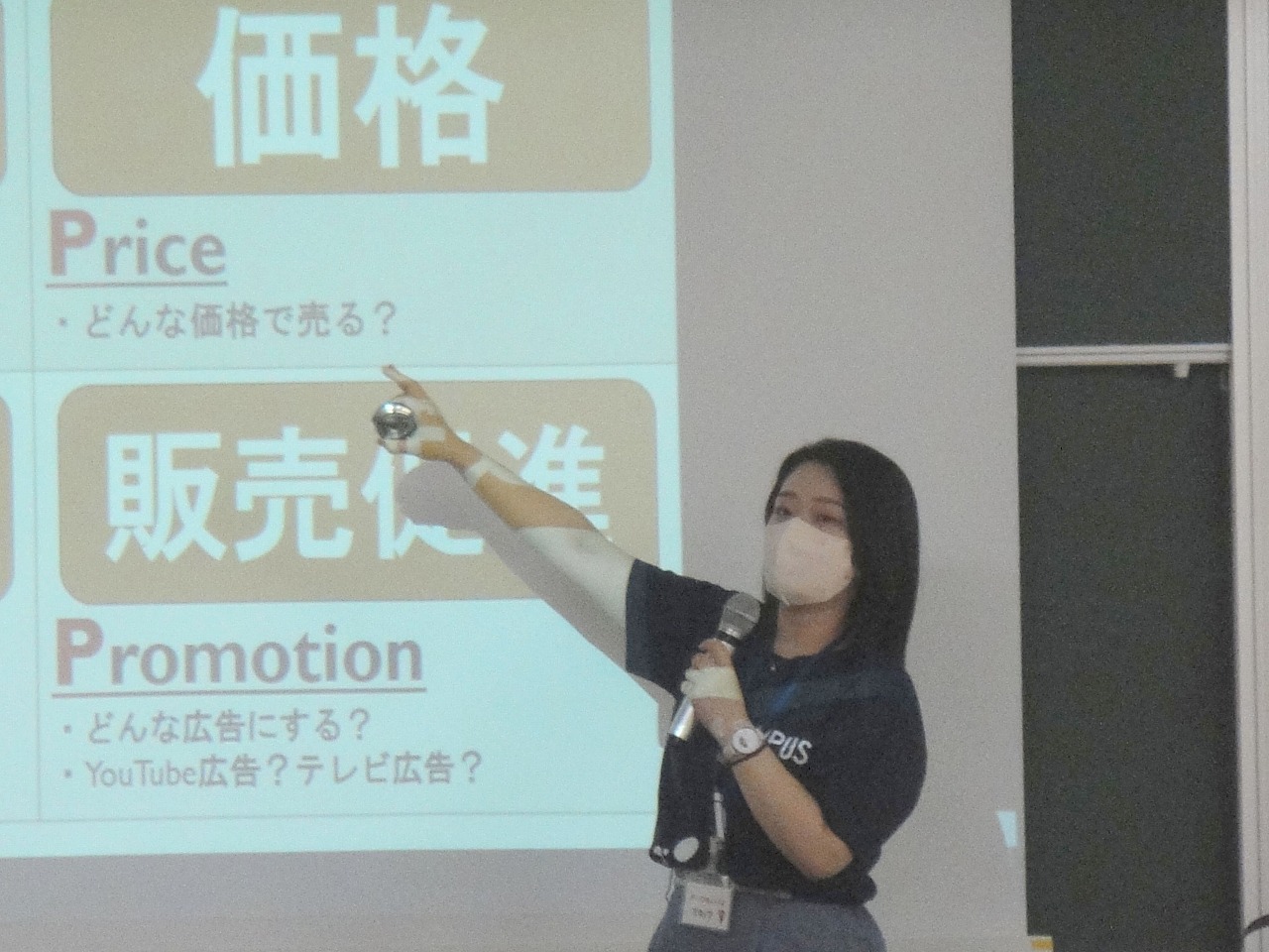学生スタッフを務めましたのは、マーケティング論を専攻します鈴木ゼミのメンバーです。ゼミでは産学連携の共同研究として各種消費財の商品開発や販路開拓を試みたり、大東市と連携した地域の魅力発信を行ったりしています。しかしオープンキャンパスでは来場者をもてなし、講義を行う経験をしました。