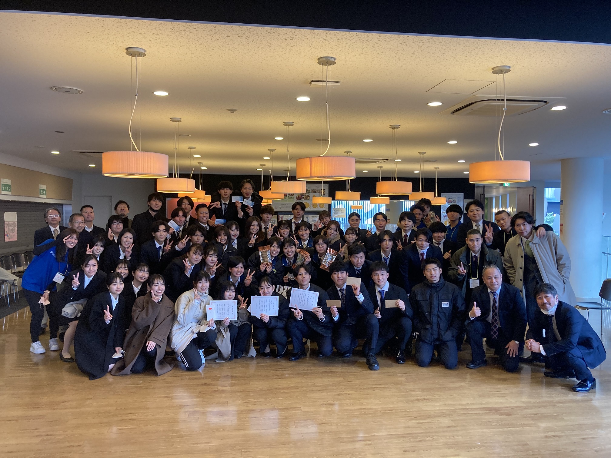 当日は大阪産業大学から15名、武庫川女子大学から7名、千里金蘭大学から11名、今年の幹事校の大阪国際大学から25名と計58名の参加者があり、審査員にはプロ球団を創業された経営者を始め、各ビジネス界で活躍する計3名の専門家にご協力を頂きました。審査員から各発表には実務経験に沿った質問やアドバイスを頂戴し、学生たちは実際のビジネスさながらの学びを得ることが出来ました。調査にご協力いただいたアウトドア企業の社長もご来席され、新たな産学連携への挑戦を提案頂き、今後の展開が楽しみです。