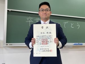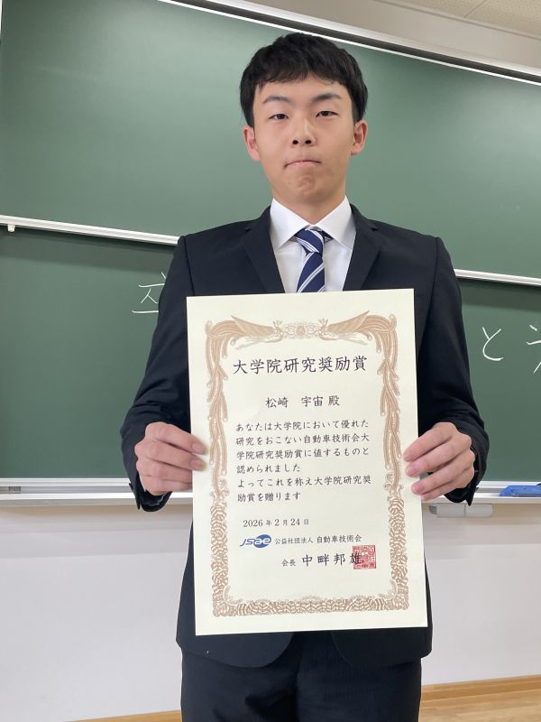 自動車技術会 大学院研究奨励賞 松崎宇宙君
