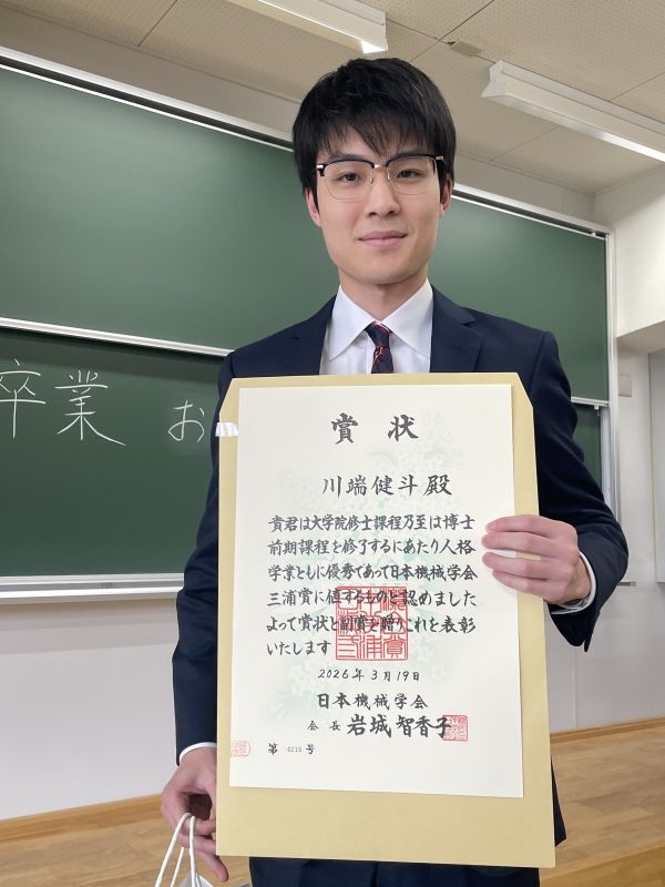 日本機械学会 三浦賞 川端健斗君