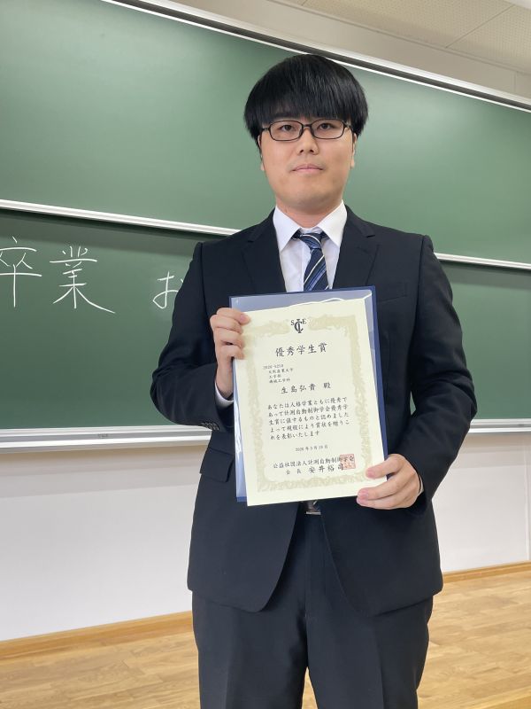 計測自動制御学会 SICE優秀学生賞 生島弘貴君