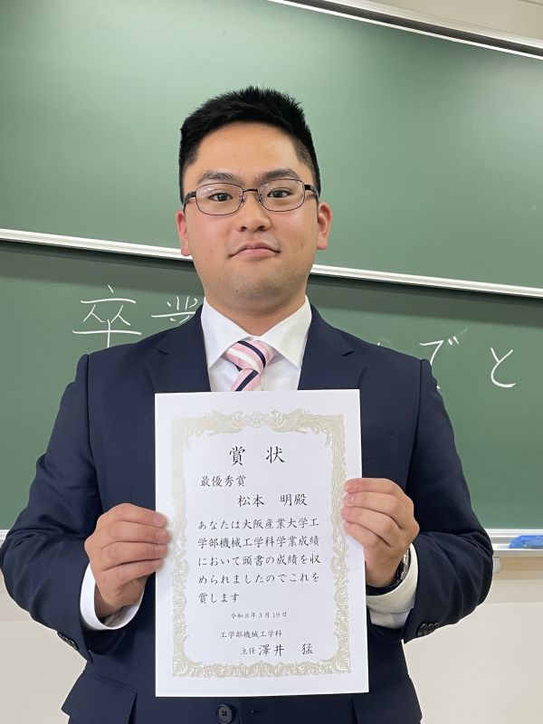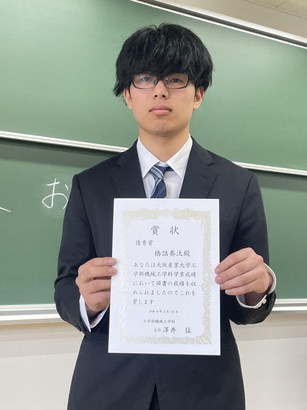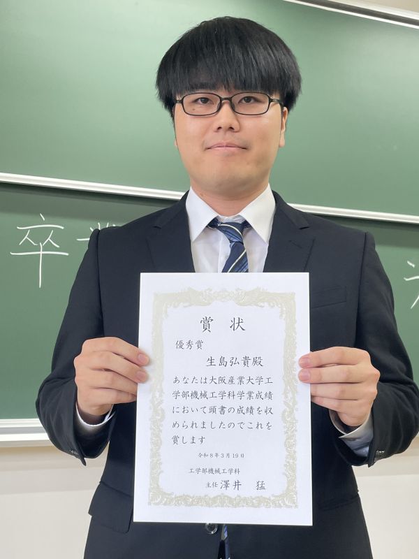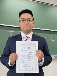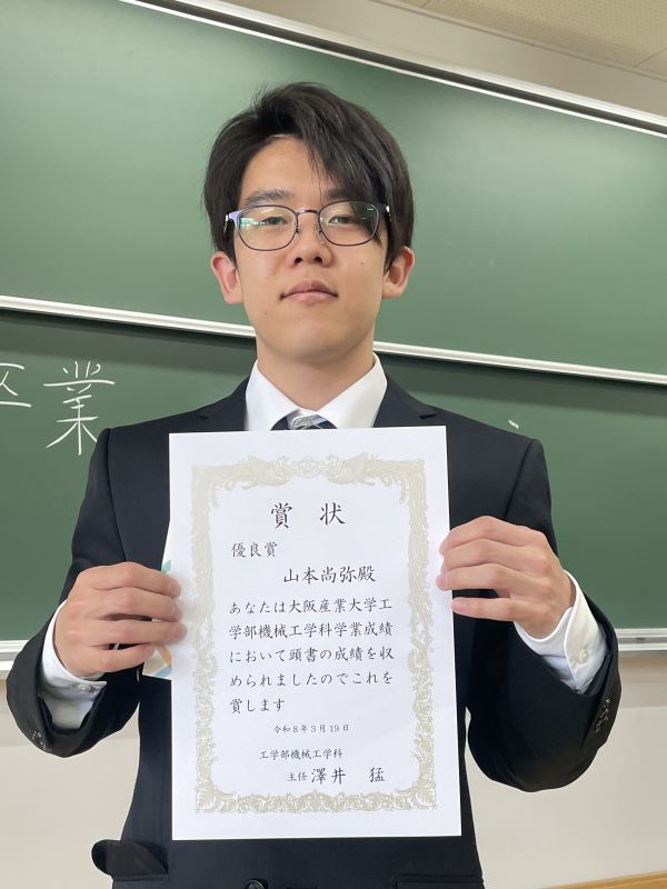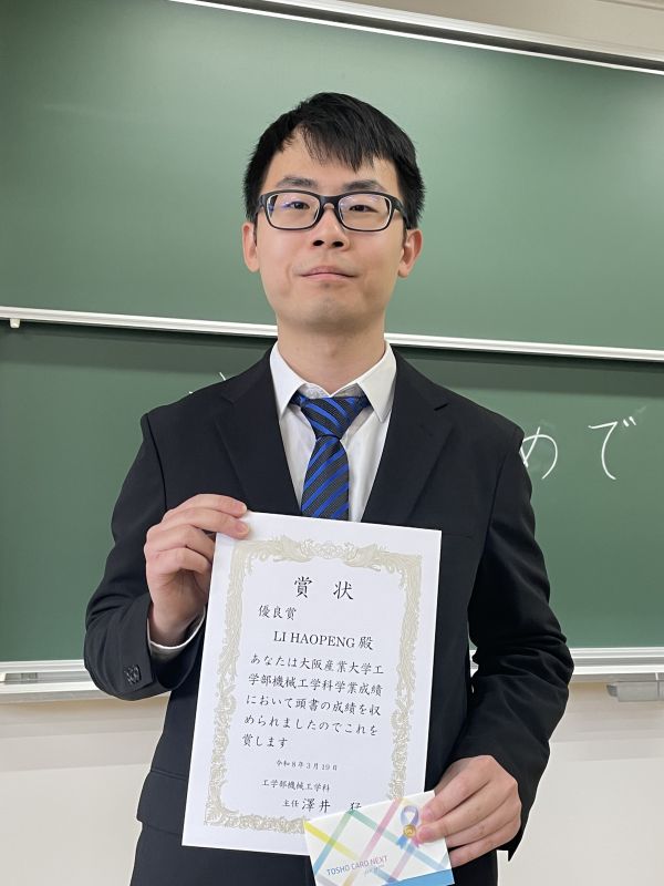 学業最優秀賞 松本明君 学業優秀賞 橋詰奏汰君 生島弘貴君 学業優良賞 山本尚弥君 和田知樹君 LI HAOPENG君