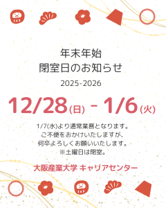学生・企業様向け ≪キャリアセンター 年末年始の休業期間について≫