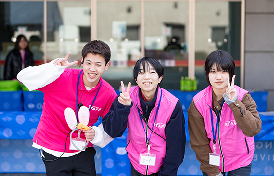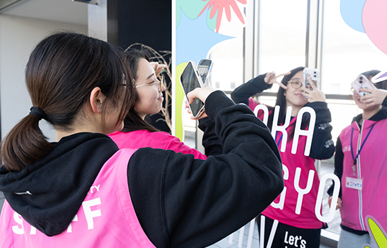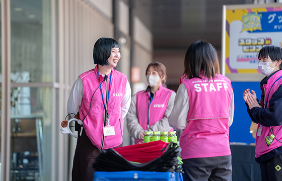 「LION(リオン)」とは、大阪産業大学のオープンキャンパスで参加者をご案内する在学生スタッフの愛称です。当日はピンクのスタッフウェアを着たLIONメンバーが、「大学生活のリアルな雰囲気」や「学生の本音」などをお届け♪