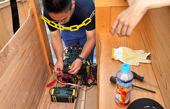 今回の旅のために用意されたバッテリーは3セット。サポートカーのトラックで充電し、途中の道の駅でバッテリーを交換しながら、約300km離れた三重県尾鷲市の「熊野古道センター」を目指します。