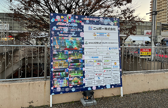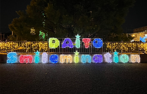 大東市スマイルミネーションは、大東市が主催する年末恒例のイベントとなっており、住道駅前デッキを11月29日~12月25日の間、ライトアップします。このイベントには、本学も協賛しており、社会連携・研究推進センターが地域連携の一環で参画している事業となっております。