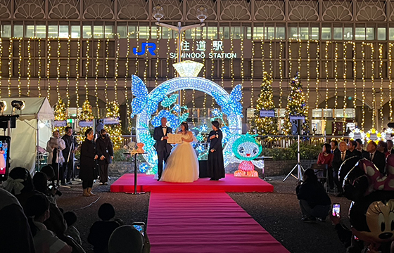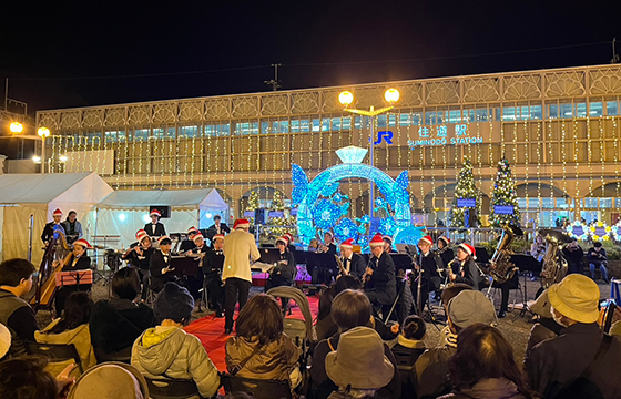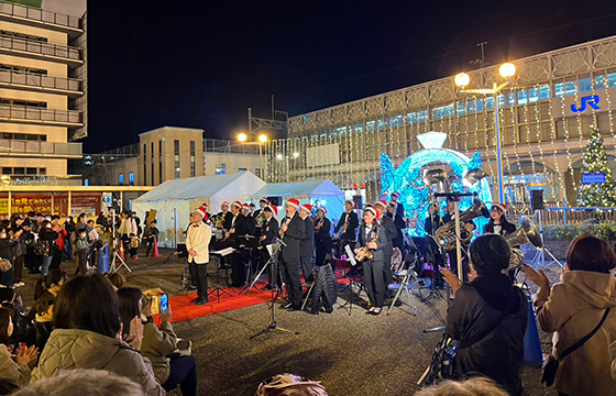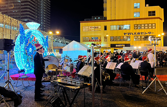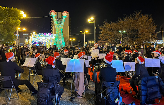 11月29日に「大東市スマイルミネーション2025」の点灯式が行われ、本学吹奏楽部の皆さんがオープニングイベントで演奏されました。