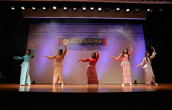 ステージパフォーマンスでは、中国、ベトナム、インドネシア、マレーシア、ミャンマー、ネパール、スリランカなど多様な国々の留学生が、自国の伝統的な舞踊や歌謡を披露しました。特に、華やかな衣装と力強い舞踊は、各国の文化的多様性と独自性を色濃く表現し、観客の皆様から大きな反響をいただく事ができました。