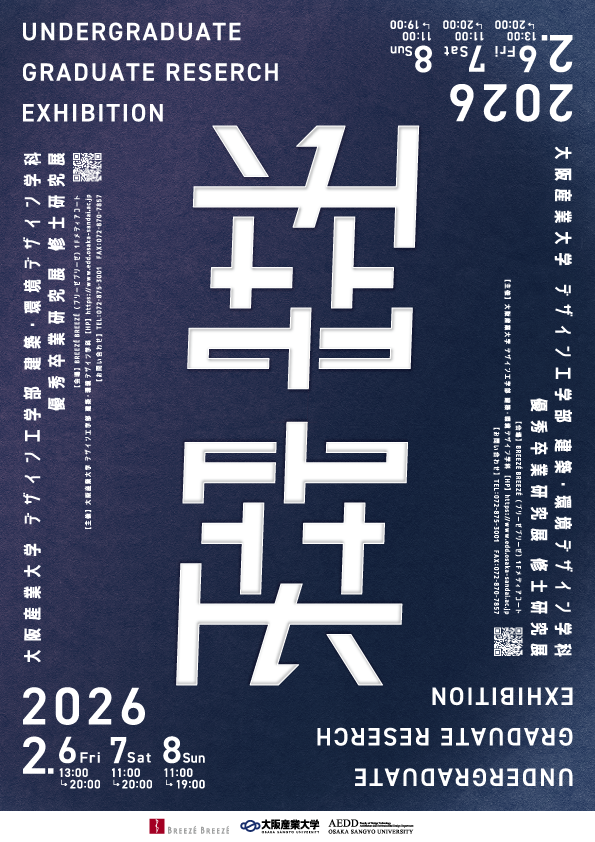 2月6日(金)〜8日(日)の期間、BREEZE BREEZE(ブリーゼブリーゼ)1Fメディアコートにて大阪産業大学 デザイン工学部 建築・環境デザイン学科「優秀卒業研究展 修士研究展 2026(Graduation Exhibition 2026)」を開催いたします。