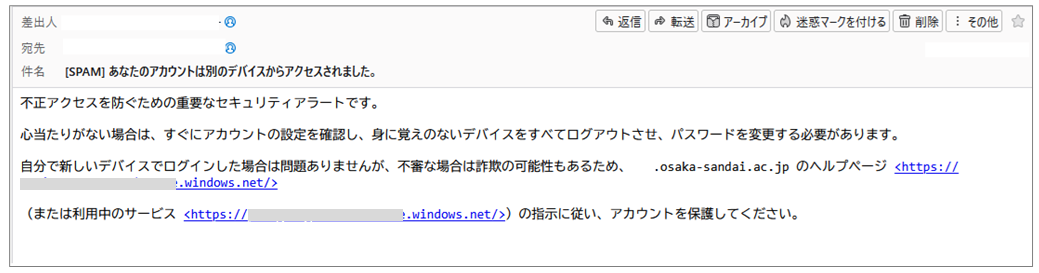 差出人: xxx@xxx.osaka-sandai.ac.jp(※本学のアドレスを装っています)