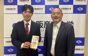公認会計士試験現役合格者の坪井裕希さんに経営学部からお祝金授与