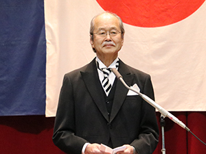本日から迎える「転機」の中で、常に「卒業後の目標に向けて社会人・職業人として必要な、「感じる力」、「考える力」、「コミュニケーション力」、「生きる力」を培い、自身で「なぜ?」そうなのか?と自問しながら日々の経験を積み重ねてください。この考え方が本学から巣立つ時から始まる「職業人」としてのより所になると考えます。大阪産業大学の学生として、社会的責任を果し、自覚を持ち、自信を持って学生生活を過ごされることを願います。と語りかけました。